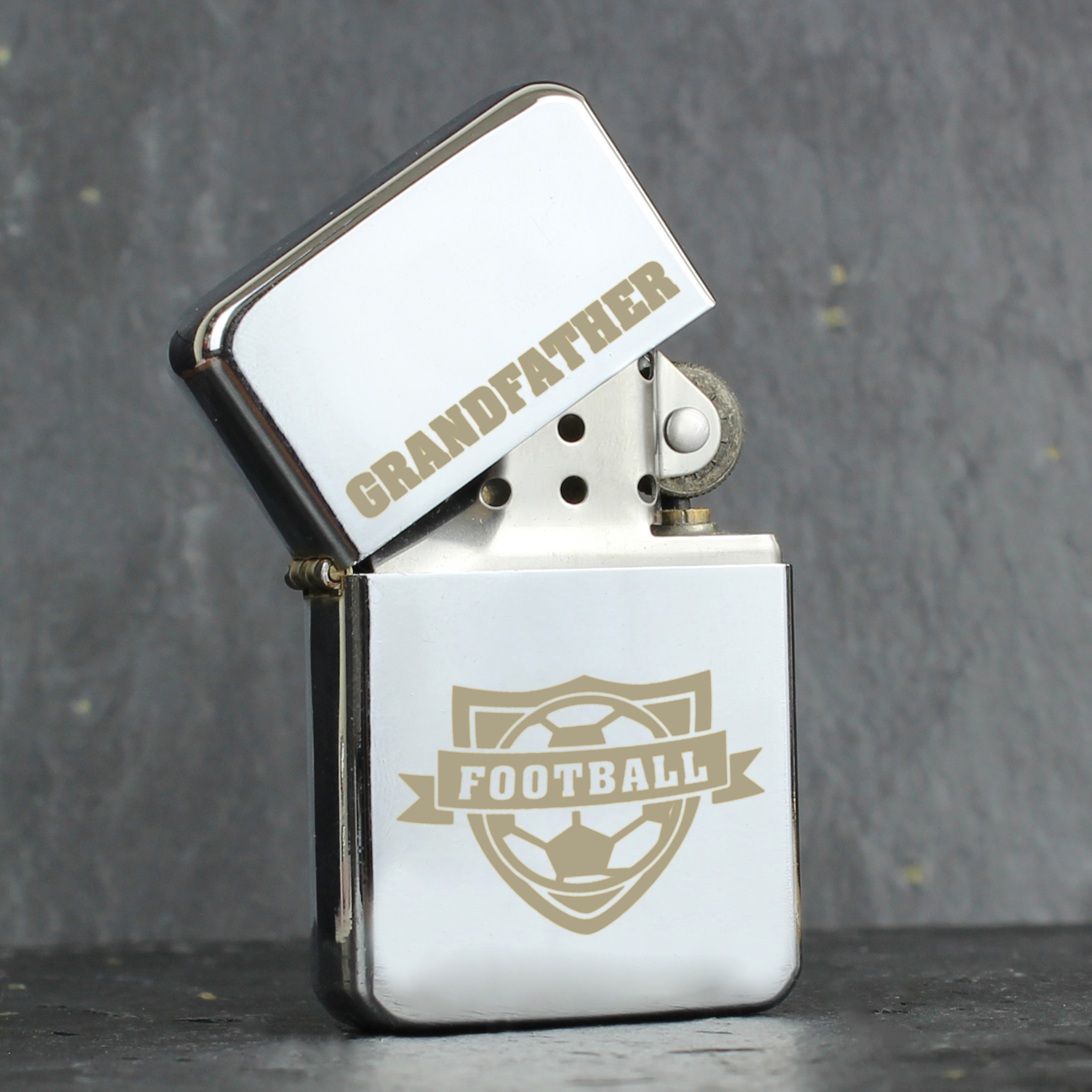You can personalise this Lighter with a name up to 12 characters which will appear at the top. The word ‘FOOTBALL’ is fixed text. All personalisation is case sensitive and will appear as entered. If you require UPPERCASE then please enter in UPPERCASE.